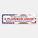 Der Text lautet: "Ach, kannst du E PLURIBUS UNUM sehen, geätzt im Herzen einer Nation?" Das Fragezeichen am Ende des Textes legt nahe, dass dies angesichts der spaltenden Rhetorik des Tages eine fragend Frage ist. Der Autoaufkleber hat eine amerikanische Fahnengrenze, mit rot und blau.. und ist Teil unserer Sammlung Heart of a Nation.