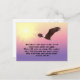 Christliche / Bibelpostkarte mit einem majestätischen Adler, der über einen rosa, gelben und lila pastellfarbenen Himmel fliegt, mit einem strahlenden Sonnenübergang. Im Text heißt es: "Aber diejenigen, die auf den LORD hoffen, werden ihre Kraft erneuern. Sie werden wie Adler auf den Flügeln steigen; sie werden laufen und nicht erschöpft werden, sie werden laufen und nicht ohnmächtig sein." Isaiah 40:31 Text ist vollständig anpassbar, also fügen Sie Ihren eigenen Lieblings-Vers oder Text.