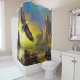 Ein kahlköpfiges Adlerfliegen über dem Gebirgstal unten. Mit einem gelben und blauen Sonnenuntergang auf diesem Ölgemälde entwerfen Sie an gesetzt diesem Duschvorhang.