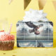 Ein Glatzenadler, der mit einem amerikanischen Fußball durch einen Torpfosten fliegt