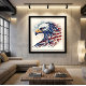 A majestic eagle whose feathers flow into dynamic waves of the American flag—stars, stripes, and vibrant red, white, and blue intertwine with ornamental detail and fierce expression. A symbolic artwork of power, freedom, and national identity, ideal for patriotic, historical, or heroically inspired brands.
