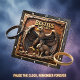This highly dimensional square wall clock features a unique illustration of a brown eagle with a determined expression and a white, smiling rabbit sitting closely together. The entire design is rendered in muted brown, tan, and dark leather-like tones, strongly suggesting a deep sculpted relief or Sculpted Leather Look. The eagle is perched on the left, displaying detailed feathers, while the rabbit is on the right, appearing cheerful with long ears. They are framed by a simple border of textured vines and thick leaves carved into the perimeter. The background features detailed rocky terrain and stylized trees. The large, three-dimensional embossed text "BESTIES FOR LIFE" is carved across the top center in a bold, golden serif font. The clock face features a simple clock face border with large, white, numbered tick marks (1 to 12) integrated into the outer frame. The artwork is surrounded by a thick, dark brown decorative border that resembles a black wood frame.