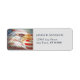 Ein majestätischer amerikanischer Glatzenadler, der über den US Flagge überlagert wird, macht ein patriotisches und attraktives Rücksendelabel. Der dunkelblaue Text rechts wird auf einem silbergrauen Hintergrund platziert und ist leicht zu verändern.