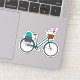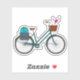 Dieser Kontur-Aufkleber zeigt eine von Melissa Balmer handgezeichnet Abbildung eines aquamarinen City-Bikes mit einem Globus (Nordamerika) in seinen Panniers und einem rosa fliegenden Herz in seinem Korb.