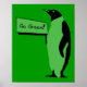 Anstelle von Schwarz und Weiß ist dieser Pinguin am Erdtag grün und schwarz und trägt ein Schild, auf dem steht "Grün gehen". Niedliches Design mit einer wichtigen Botschaft, um herauszufinden, dass unser Planet diesen Tag der Erde und jeden Tag gerettet werden muss.