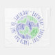 Worte, die die Schönheit und das Wunder der natürlichen Welt beschreiben, und Worte, die sich auf die Pflege der Erde beziehen, bilden dieses Erddesign. Die Wörter "Earth Day" wiederholen sich um das zentrale Design sowie "Est. 1970." Der Tag der Erde fand erstmals 1970 statt und wird jedes Jahr am 22. April als Demonstration des Umweltschutzes und der Feier unseres Planeten fortgesetzt.