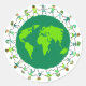 Niedliche Cartoon-Illustration von kleinen dicken Stick Jungs und Mädchen aus der ganzen Welt, die Händen um einen grünen Globus halten. Bilder auf verschiedenen Geschenken und Produkten erhältlich. Sie können die Hintergrundfarbe ganz einfach anpassen und ändern und Text hinzufügen, wenn Sie möchten.
