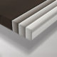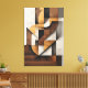 Abstract vertical composition with interlocking geometric shapes in shades of brown, ochre, black, and white. Texture reminiscent of aged paper and artistic collage. Sophisticated design ideal for modern and minimalist decor. Bring structural art and timeless elegance to your space.