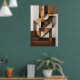 Abstract vertical composition with interlocking geometric shapes in shades of brown, ochre, black, and white. Texture reminiscent of aged paper and artistic collage. Sophisticated design ideal for modern and minimalist decor. Bring structural art and timeless elegance to your space.