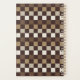 A checkerboard pattern with alternating dark brown, light brown, and beige squares, creating a sense of rhythm and visual depth.