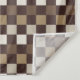 A checkerboard pattern with alternating dark brown, light brown, and beige squares, creating a sense of rhythm and visual depth.