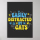 Bright and whimsical, the Easily Distracted by Cats design features playful cat faces, tails, and paw prints. Perfect for anyone who admits cats steal their attention every time.