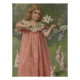 cute, adorable, sweet, wholesome, demure, pink dress, green, rabbits, bunnies, cuddly, soft, kid, little girl, child, young, youth, white lily, floral, flowers, spring, cottagecore, old fashioned, vintage, retro, female, feminine, girly, innocent, quaint, kitsch, eclectic, kitschy, quirky, lithograph print, chromolithograph, illustration, colorful, VIctorian Era