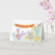 Funny bunnies and chicks are gathered on a hill with their colorful Easter eggs. Change the greeting inside, or add your name, to make this card truly unique.