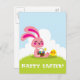 Pink bunny holding a basket full of colorful Easter eggs with little chick friend. Celebrate Easter Holiday and greet spring season with this cute and original design by Kakigori Studio.