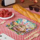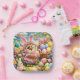Description bring joy and colour to your Easter celebrations with this delightful design featuring an adorable bunny surrounded by vibrant decorated eggs flowers and playful details. This artwork is perfect for party plates cups napkins and all your festive table wear the bright pastel colours and charming illustration create a cheerful fun atmosphere that everyone will love.