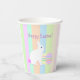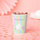 A simple, and pretty design with a cute Easter bunny sitting beside 2 pink, and yellow Easter eggs