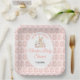 A charming Easter‑themed baby shower plate featuring a sweet bunny surrounded by soft pink floral eggs. The patterned background adds a festive spring feel, while the central layout keeps the event details clear and elegant. Perfect for celebrating a mom‑to‑be with an Easter twist, springtime palette, and gentle woodland charm.