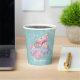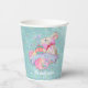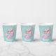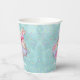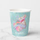This whimsical watercolor paper cup design features an Easter Bunny, three brightly-colored Easter eggs, a ribbon banner with the text 'Happy Easter' and a background of scattered confetti. Search ID377 to see other products with this design.