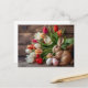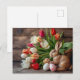 Easter bunny seated beside colorful eggs and tulip postkarte