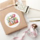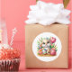 Round sticker is shown with a cute Easter bunny art print.