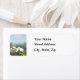 Unter einem zarten blauen Himmel Karo ein niedlicher Osterhasen ein Nest aus blauen, rosa und gelben Ostereiern, eingebettet in das lange Gras. Dieses Design kann ein passendes Set mit Ostergrusskarten, Adressetiketten und Porto sein.