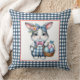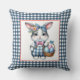 Easter Bunny with Basket of Eggs on Blue Gingham Kissen