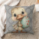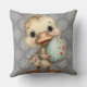 Easter Duckling Gray Damask Pattern Throw Pillow Kissen