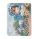Celebrate the beauty of spring with this charming vintage-inspired Easter magnet featuring a sweet curly-haired girl riding in a floral Easter egg carriage pulled by two darling lambs. Adorned with soft blue forget-me-not flowers, delicate ribbons, and pastel countryside details, this Victorian-style illustration captures the timeless magic of Easter.