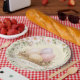 These Easter paper plates have a nest with Easter eggs adorned with flowers. Colors used include olive green, cream, blush pink, purple and brown.