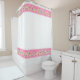 A White Shower Curtain For Easter Decor With Pink Boarder And Colorful Floral Rabbits