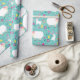 A Teal Wrapping Paper Designed With White Lambs, Rabbits For Easter Gifts