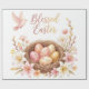 Delicate Easter illustration featuring a nest filled with decorated eggs surrounded by soft spring flowers and a peaceful dove. A gentle pastel design perfect for Easter gifts, seasonal decor, stickers, apparel, and greeting items. Ideal for anyone who loves cozy spring and Easter-themed artwork.