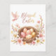 Delicate Easter illustration featuring a nest filled with decorated eggs surrounded by soft spring flowers and a peaceful dove. A gentle pastel design perfect for Easter gifts, seasonal decor, stickers, apparel, and greeting items. Ideal for anyone who loves cozy spring and Easter-themed artwork.