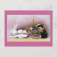 Easter Wishes A white bunny is harnessed with a pink ribbon to a pink and green basket on wheels containing daffodils. A black and white rabbit is trying to climb aboard in this vintage Easter postcard from 1919.