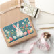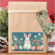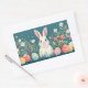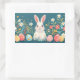 Cute white rabbit with a flower background and easter eggs on both sides of the rabbit
