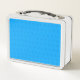 Erstellen Sie das perfekte personalisierte Geschenk für die Schildkrötenfans, wenn Sie diesem Lunchbox einen Namen geben. Das Foto eines Set der Ostkastenschildkröte vor einem hellblauen gemusterten Hintergrund ist bereit, mit einem Namen oder einem anderen Text unten in fett weißer Schrift personalisiert zu werden.