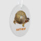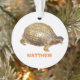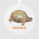 Schaffen Sie sich ein personalisiertes Urlaubsgeschenk für die Schildkrötenfans, wenn Sie diesem Weihnachtsschmuck einen Namen geben. Das Ornament ist mit einem Foto einer Ostkastenschildkröte versehen und kann mit einem Namen oder einem anderen Text unten in fett orangefarbener Schrift personalisiert werden. Foto und Text erscheinen auf beiden Seiten dieses Ornaments.