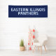 Dieses Design enthält das offizielle Wortmarkenlogo für die Panthers der Eastern Illinois University (EIU). Der Text "EASTERN ILLINOIS" wird hervorgehoben in fett gedruckter, serifenloser Schrift in der oberen Reihe dargestellt, gefolgt von "PANTHERS" in einem ähnlichen Stil in der unteren Reihe. Beide Textreihen werden in einem soliden, tiefen Blau dargestellt, einer Farbe, die der Universität zugeordnet ist, vor einem sauberen, weißen Hintergrund. Die Verwendung aller Hauptstädte und eines starken Schriftartes vermittelt ein Gefühl von Power und institutioneller Stärke. Dieses Logo wird auf verschiedenen Plattformen verwendet, um die Eastern Illinois University Panthers, insbesondere ihre athletischen Teams, zu repräsentieren. Zeigen Sie Ihren EIU-Stolz mit diesem klassischen Logo-Design!