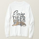 Eine stilisierte Grafik mit der Phrase "Easy Tiger" in fett, spielerisch Typografie. Die Einrichtung besteht aus einer majestätischen Tigerlounge ganz unten, die in Orange- und Weiß-Tönen mit schwarzen Streifen gehalten ist. Der Text und der Tiger sind goldene Sternakzente, die eine glänzende und elegante Touch verleihen. Das Ambiente ist entspannt, aber sicher und verbindet Eleganz mit einem entspannten Charme.