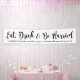 Das stilvolle Hochzeitsempfangsbanner "Eat Drink & Be Verheiratet" in trendiger, schwarzer Kalligrafie-Schrift mit modernem Text, um der Braut und dem Bräutigam zu gratulieren. Personalisieren Sie mit ihren Namen und Datum verheiratet. Herzakzent. Die Farben Schwarz und Weiß können geändert werden.