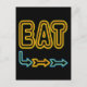 EAT Retrokunst basierend auf einem Vintagen neonischen Restaurantschild. Die Buchstaben sind gelb und rot, die Pfeile blau, rot und gelb. Spaß, trendige Werbekunst für Leute, die kochen oder essen.