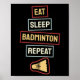 Eat Sleep Badminton Repeat Badminton Player Retro, Poster