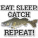 A funny fishing decal for the avid walleye angler. Eat Sleep, Catch Walleye Repeat. Perfect for the boat, car, tackle box.