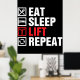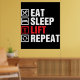 Für den Gymnastiker wiederholt sich ein Design, das sagt, "Sleep Lift" zu essen. Dieses Design sieht wirklich effektiv aus auf diesem Poster