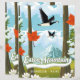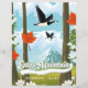Eaton Mountain Skowhegan, Maine-Cartoon Landschaft mit Gänsen über einem Berg und Bäumen fliegen.