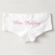 Für die Braut Weds der Trousseau und eben auf ihren Flitterwochen, niedlichen boyshorts Schlüpfer in der weißen Baumwolle mit Frau und dem neuen letzten Namen der Braut im Rosa, das zu einer anderen Farbe geändert werden kann: gerade verheiratet