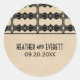 Elegante und raffinierte Art Deco Border Wedding Stickers mit einem schwarzen Deko Muster Rand auf einem Imitat Papier Textur Hintergrund. Diese stilvollen Hochzeitsaufkleber sind eine gute Wahl für eine moderne Hochzeit. Einfach anzupassen, fügen Sie einfach die Details Ihrer Hochzeit in den Textfeldern zur Verfügung gestellt. Klicken Sie auf "Anpassen", um weitere Personalisierungsoptionen zu erhalten.