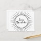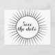 Eine elegante und elegante Deko Retro Save the Date Postcard mit einem runden Deko-Sonnenburstdesign. Einfach zu anpassen, fügen Sie einfach Ihre Hochzeitsdetails in den Textfeldern zur Verfügung gestellt. Klicken Sie auf "Anpassen", um weitere Personalisierungsoptionen zu erhalten.