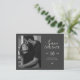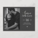 Diese moderne, minimalistisch Save the Date Postkarte mit Foto bietet ein zeitgenössisches Set von Elfenbein-Schriftart auf dunkelgrauem schwarzem Hintergrund. Diese Karte ist stilvoll und elegant und eignet sich perfekt für das moderne und stilvolle Paar.